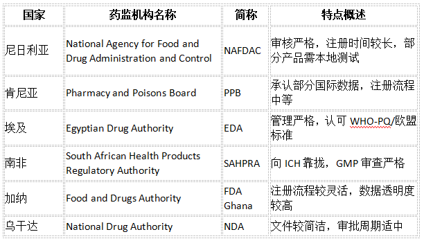 正遭到越來越多中國制藥企業的注沉。憑仗復雜的生齒基數、日益增加的醫療需求以及對健康系統的投資加大,非洲成為藥品出口的新藍海。目前,非洲生齒已超14億,醫藥市場規模于2023年已沖破600億美元(數據來歷IQVIA《Africa’s Pharmaceutical Market Outlook 2023》)。做為非洲次要藥品進口來歷國之一,中國藥品正在部門國度進口占比跨越30%(數據來歷:WHO Africa藥品供應鏈調研)。但取此同時,非洲國度正在藥品進口方面存正在律例分歧一、流程復雜、政策不竭變化等挑和。全球跨境醫貿平臺滴度醫貿網為您系統梳理藥品出口非洲的焦點流程取實操要點,幫幫企業少走彎、高效出海。非洲54個國度,每個國度的藥監體系體例和準入尺度差別大。以下為部門沉點國度藥監機構(NRA)簡介: